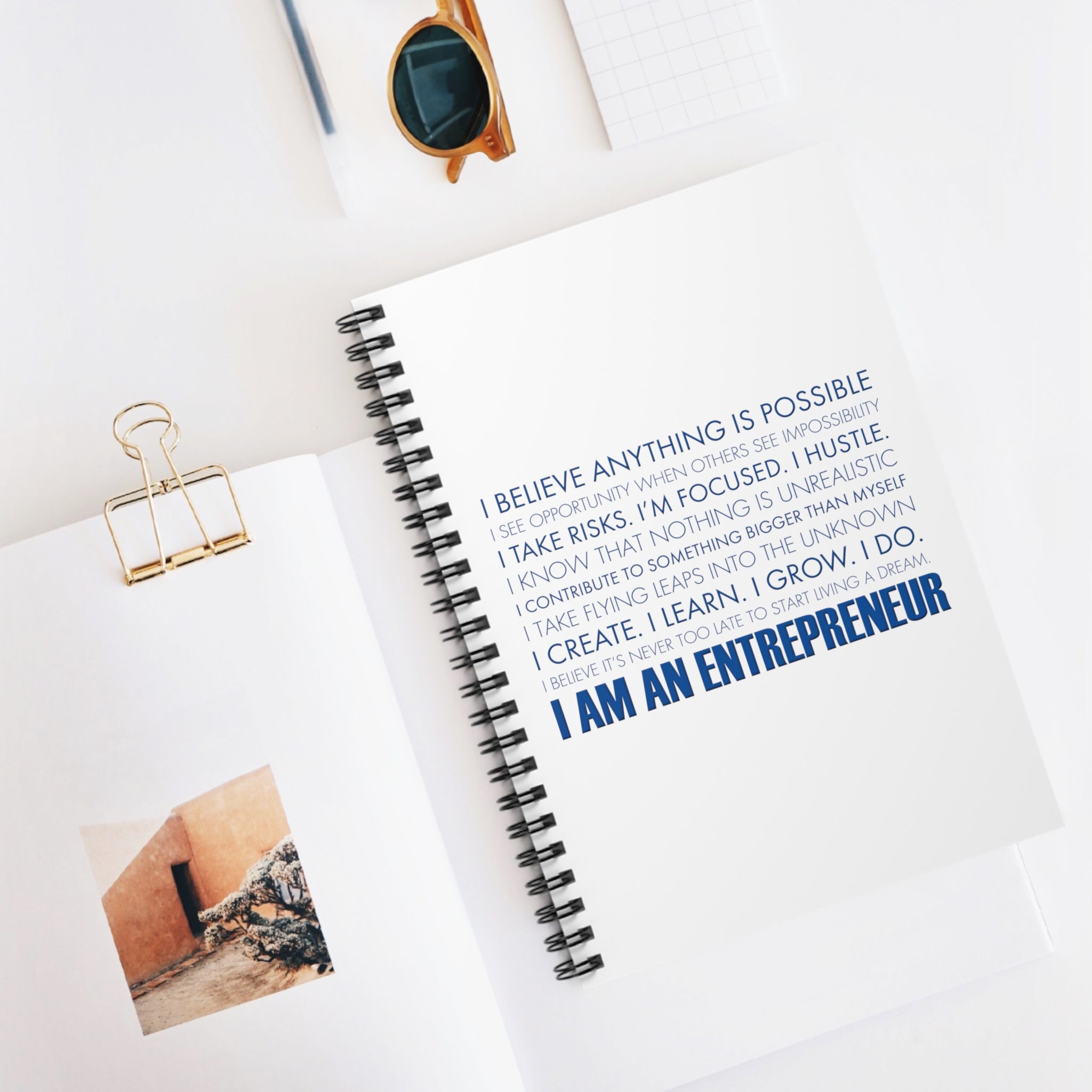 This 118-page spiral notebook with ruled line paper is a perfect companion in everyday life.. to-do lists, business notes, inspiration, etc.