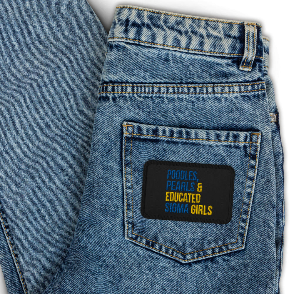 Poodles Pearls & Educated Sigma Girls Embroidered Patch - Black