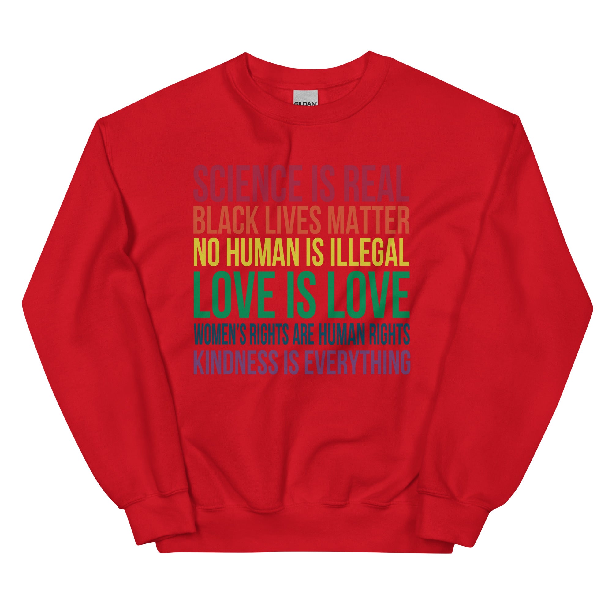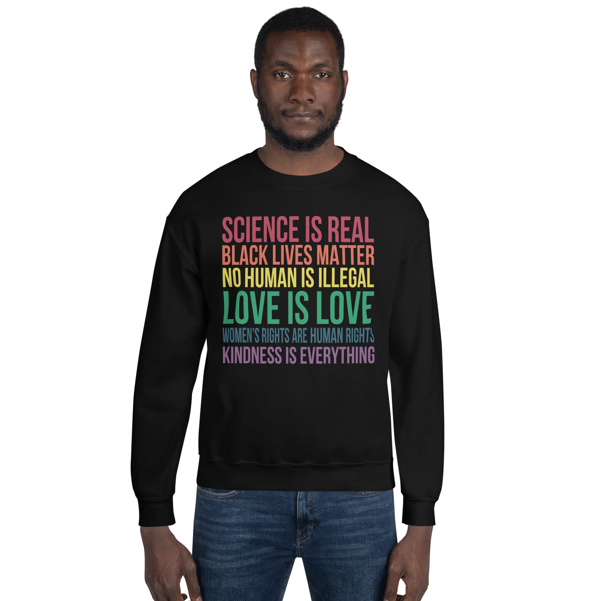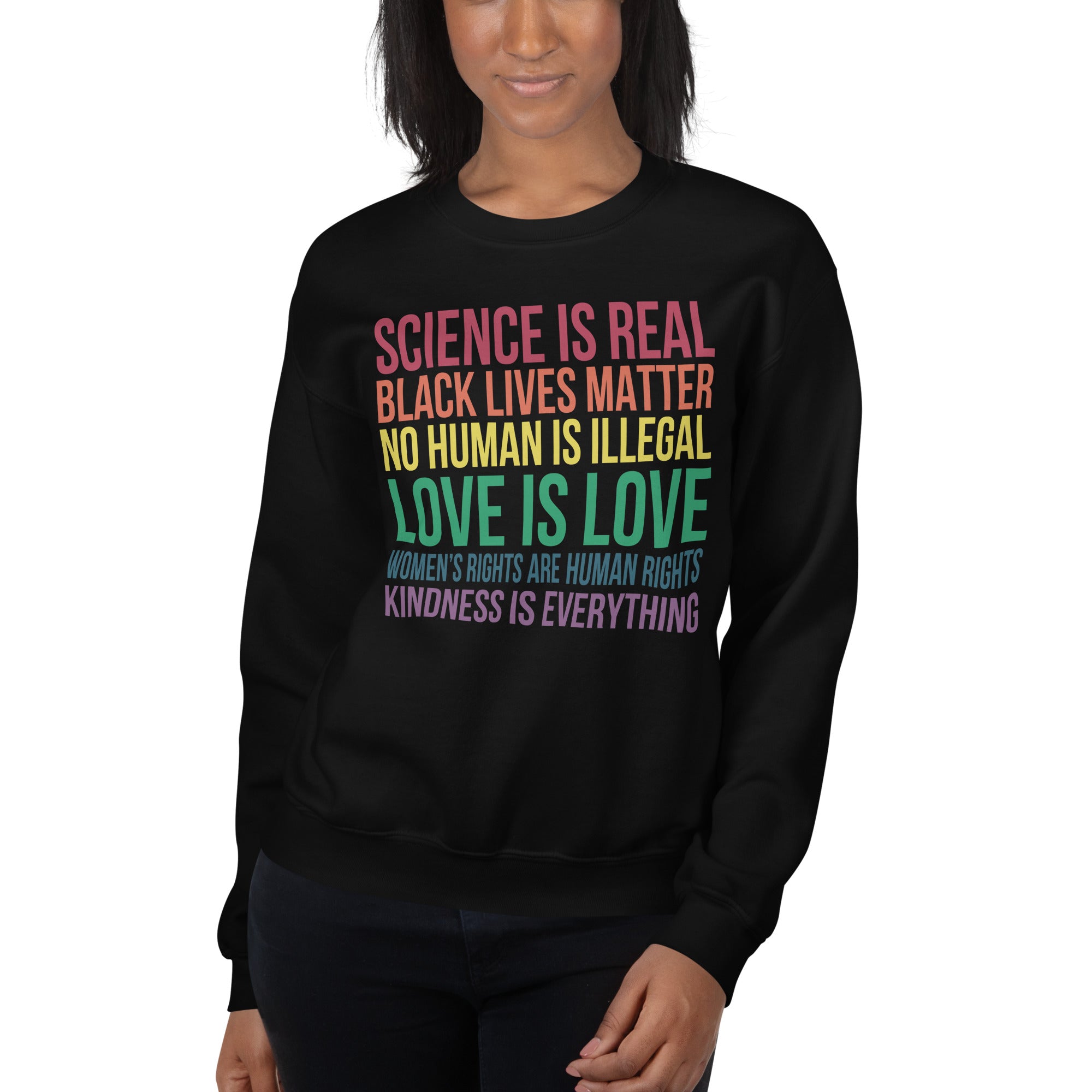 Message: Science is Real Black Lives Matter No Human Is Illegal Love Is Love Women's Rights Are Human Rights Kindness Is Everything